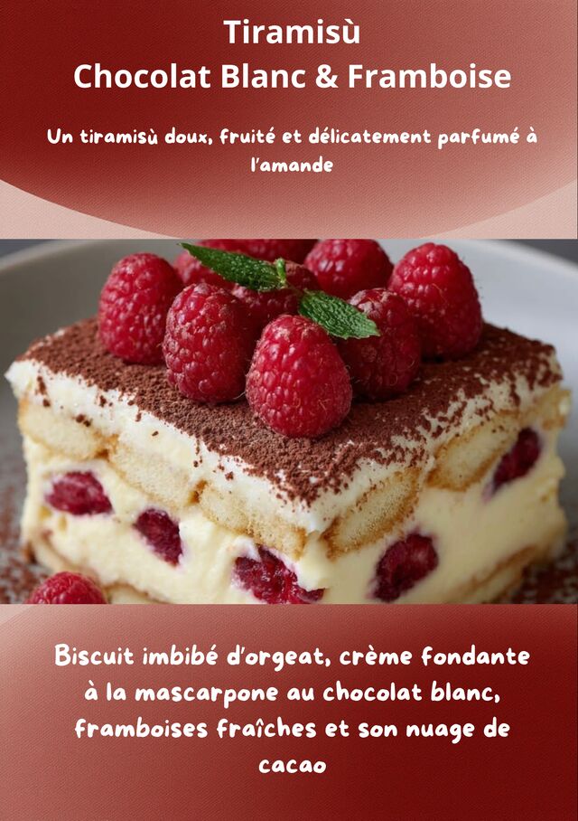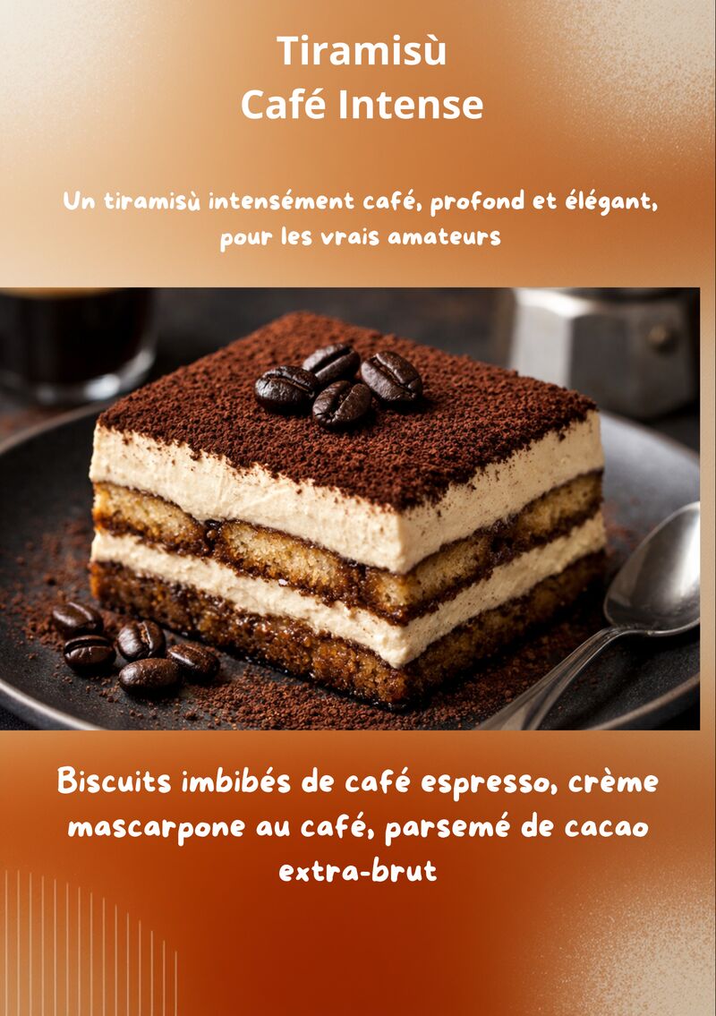Classiques ou revisités, mes Tiramisù sont réalisés avec des ingrédients de qualité, dans le respect de la tradition italienne – pour une explosion de saveurs à chaque cuillère.